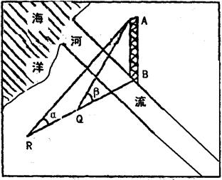 3、综合题 (24分)位于小河右岸的某校同学可以在不过河的情况下利用铁塔及其影子测算每天的正午太阳高度。在12月22日正午北京时间为12月23日1时整,测得太阳高度为β=68?,过几天后,测得正午太阳高度为α,读图回答下列问题。