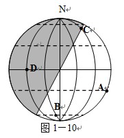 (3)图中A、B、C三点中,太阳高度大于00的是?,等于00的是?。?