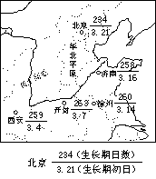 4、单选题 读“我国部分地区生长期(日均温>6℃的持续期)资料图”,完成下列各题。