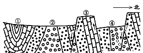 (1)图中①②③④四处,在地质构造上属于背斜的是__________,属于向斜的是__________,属于地垒
