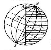 4、综合题 下图中阴影部分表示夜半球,非阴影部分表示昼半球。读图,回答下列问题。(20分)