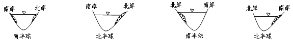 本题解析:受地转偏向力的影响,若河流由西向东流,南半球河流北岸受侵蚀,南岸沉积,北半球河流北岸沉积,南岸侵蚀。
