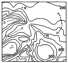 1.长城主要建于山脊地带,故A—B段等高线“凸低为高”为山脊。C-D段“凸高为低”为山谷;E-F段“凸高为低”为山谷;G-H段等高线分布较稀疏,为缓坡。