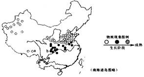 1、单选题 读三月上旬我国某种农作物物候现象分布示意图,回答问题。
