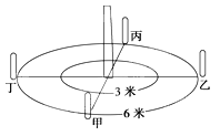 2、单选题 我国某中学建了一座太阳历广场,广场中间是6米高的雕像柱(如下图)。一年中大多数日子,正午影子投影朝丙方向,且影长从不超过6米的外圈。北京时间12:40是一天中雕像柱影子最短的时刻。据此回答下列各题。