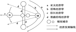 根据我国经济格局布局,M是上海,b是沿海的京沪线,d包括京广、兰新等铁路是正确的;d京广线经过武汉,所以N就不可能是武汉应是重庆,c可能是长江,不可能是黄河。选择A项。