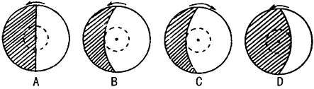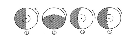 2、单选题 下面四幅昼夜分布图中,表示北半球夏至日的是