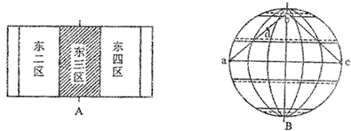 1、综合题 ? 下列左图中阴影部分有12月21日和12月22日两个日期的分界,右图中ab、bc为此刻地球表面晨昏线的一部分,读图后回答问题。