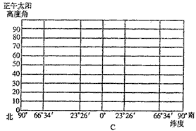 (1)在下图上画出此刻正午太阳高度随纬度的分布情况。