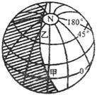 点评:本题难度中等,解答本题的关键是找参考经线对应的地方时。另外本题还可考查甲乙两地的地方时、甲乙两地对应的经度,甲乙两地昼夜长短、日出日落状况等问题。由于甲地地方时为6时,其经度为90°E,由于乙地正好处在晨线上(即此时当地正好日出),其经度为60°E,可以计算出其日出时刻为4时。