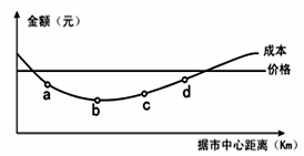1.该工业选址的较佳位置是2.若从经济和环境效益考虑,该工业可能是3.图中成本曲线由a到b变化的主要原因是