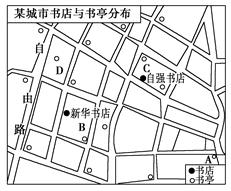 4、单选题 读某城市书店与书亭分布图,回答题。