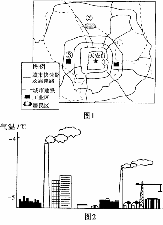 (1)图中①处为北京的CBD,它没有分布在市中心是受________因素影响。②处布局居民区是为了________,居民区布局在此的有利因素主要是_______。