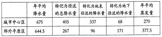 (1)比较北京城市中心区与郊外平原区年降水量的差异并说明原因。(6分)