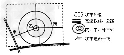 1、单选题 下图是某城市内部和对外联系路线图,据图回答1-2题。