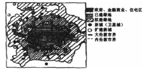 2、单选题 下图是“伦敦的城市规划布局”示意图,由此判断伦敦的城市地域结构模式属于