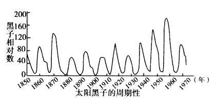 (4)太阳黑子活动的周期约为11年。而从图上可以看出,1960年是一个太阳活动高峰年,材料中说的