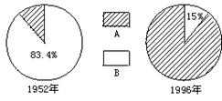 (1)图中A代表_______出口,B代表_______出口。A类商品在1952年占_______%,在1996年占_______%。