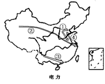 读图 “我国正在实施的资源跨地区调配示意图”,完成小题。