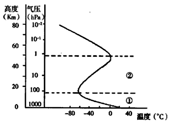 4、单选题 读图大气垂直分层示意图,关于图中①、②各层大气的正确叙述是( )