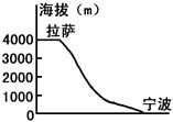 3、综合题 读“相同纬度的拉萨和宁波海拔示意图”,分析回答下列问题。