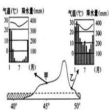 小题3:据上图信息,甲地比乙地降水量小的主要原因为(?)