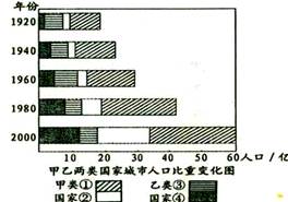 5、单选题 读下右图,甲乙两类国家城市人口比重变化,据此回答1~2题。