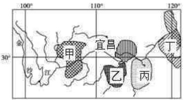 (1)根据长江沿岸经济区分布图,甲处位于四川盆地附近,主要农业地域类型为水稻种植业,农业发展的区位优势是亚热带季风气候,冬暖夏热(热量充足),降水充沛;土壤(或紫色土)比较肥沃;人口稠密,劳动力丰富;农业历史悠久,基础较好;为统筹城乡综合配套改革试验区,有国家政策支持。