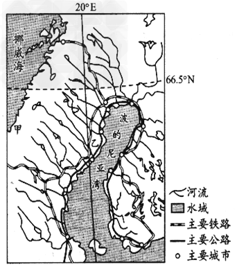 (3)据图分析说明波的尼亚湾沿岸铁路、公路线布局的区位因素。