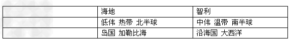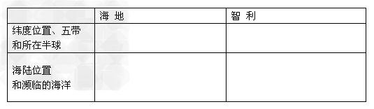 1.比较海地和智利两国的地理位置特点,完成以下表格: