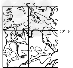 3、单选题 图为世界某区域等高线图,读图回答2 题。