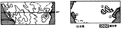 4、单选题 读世界某地区地形图和该地区城市带分布图,回答1—3题。