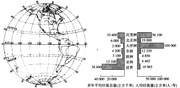 (3)南美洲面积小于北美洲,但南美洲多年平均径流总量远多于北美洲。从大气环流角度,分析南美洲多年平均径流总量丰富的主要原因。