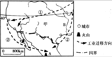 (3)分别说明甲国①②箭头所示工业扩散的方向和原因。