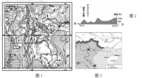 (1)图2剖面图是沿图1中KL、MN、OP、QR四条线中的____________线绘制?中南半岛的地形地势特点及对水陆交通有哪些不利影响?