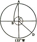 3、单选题 如图为极点俯视图,AB是晨线,CD是日界线,读图后回答问题。