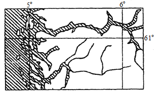 1.图示地区位于2.该地有众多岛屿和深入半岛的峡湾,它们是由:3.图示地区