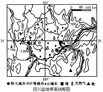 (1)简述图示地区中等城市的分布规律,并说明城市规模与数量的关系。