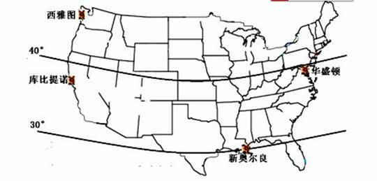 小题1:图示库比提诺位于30°--40°的大陆西岸,为地中海气候,夏季高温少雨,而冬季温和多雨。夏季降水少,光照充足,有利于糖分积累。