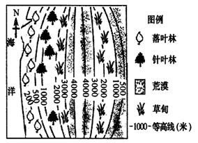 5、单选题 下图为“世界某区城等高线地形和自然带分布图”。据此完成下列各题。