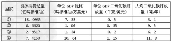3、单选题 2010年4月中国国家能源委召开第一次全体会议,着力制定长期国家能源战略,立足于化石能源低碳化利用。下表示意世界四个国家能源指标状况,据材料和表格完成1—3题。?