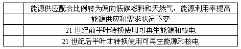 (2)把图中预测海平面上升情况的序号填入下表空格中,并与能源利用状况相适应。
