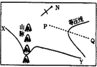 3、单选题 如下图所示X-Y线为地球自转线速度等值线,PQ为锋面,回答下列各题。