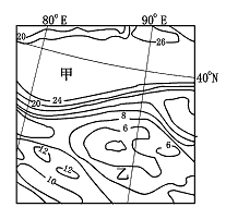 4、单选题 下图为我国西部某区域7月均温(℃)等值线图,导致甲、乙两地气温差异的主要原因是