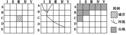 4、单选题 栅格模式是储存分析地理空间数据的主要方式之一。下图示意我国东南沿海某地不同地理图层的栅格图,每格实际面积约100平方千米。读图判断AⅠ区域和EV区域分别可能是? ( )。