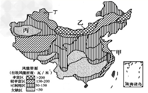 2.据调查,甲地风能资源利用前景优于丁地,其原因是