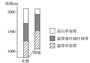1、单选题 下图示意我国东部某山地垂直带谱,读图完成下列各题。