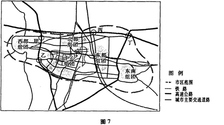 3、单选题  图7为“我国东部某城市用地分布示意图”。读图完成下题。