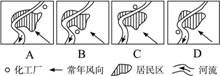 2、单选题  某城市计划建设一个化工厂,图中四种布局方案合理的一种是(? )