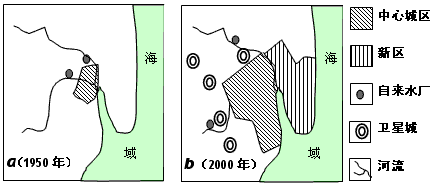 (2)该城市建立了_________城和_________区,有利于城市经济的进一步发展和保护、改善城市环境。
